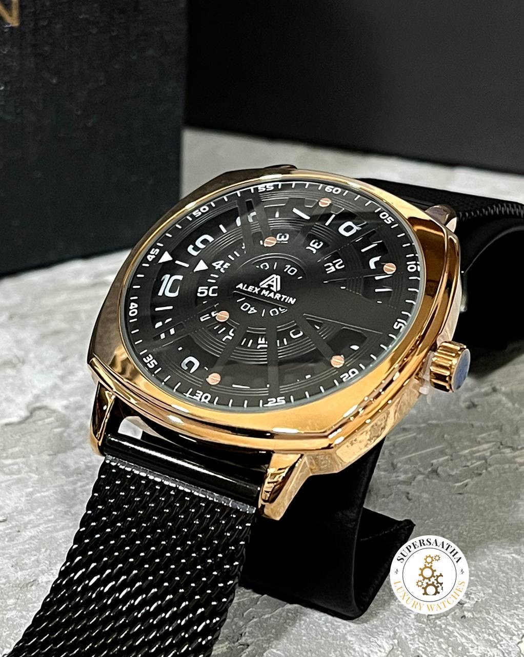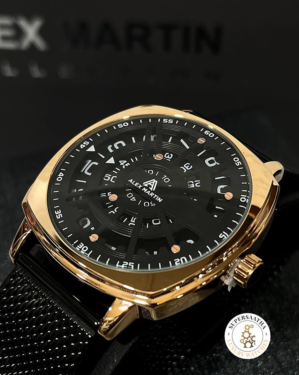 ساعت مردانه الکس مارتین رزگلد و مشکی 8019 ALEX MARTIN محصول اورجینال موتور ژاپن ضد آب تا 80 درصد بند از جنس استیل شیشه معدنی ضد خش ساخت کشور ژاپن 12 ماه گارانتی سوپرساعتها جعبه و متعلقات مارکدار