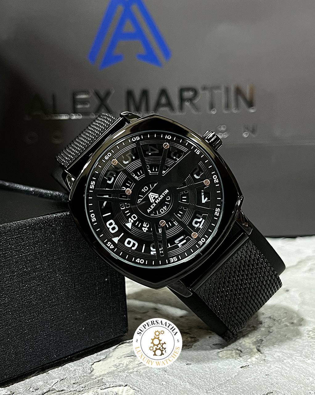 ساعت مردانه الکس مارتین مشکی 8019 ALEX MARTIN محصول اورجینال موتور ژاپن ضد آب تا 80 درصد بند از جنس استیل شیشه معدنی ضد خش ساخت کشور ژاپن 12 ماه گارانتی سوپرساعتها جعبه و متعلقات مارکدار