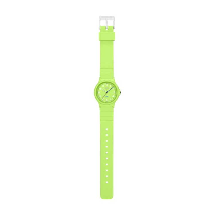 بند این ساعت از رزین زیستی (bio-based resin) ساخته شده است، مادهای که به کاهش اثرات زیستمحیطی کمک میکند و در عین حال مقاومت و انعطاف مناسبی برای استفاده روزمره دارد. این ترکیب طراحی ساده، وزن سبک و مواد سازگار با محیط زیست، LQ-24B-3BDF را به گزینهای سبز و پایدار در میان ساعتهای آنالوگ تبدیل کرده است.