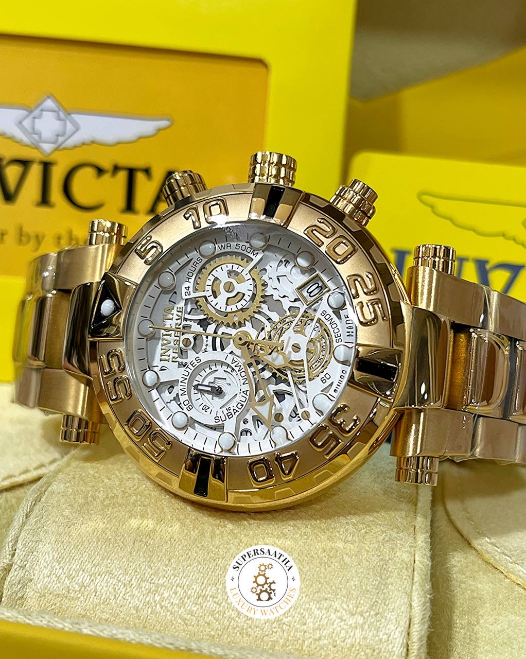 ساعت مچی اینویکتا Invicta Subaqua یک ساعت کرونوگراف با موتور کوارتز ژاپنی است که دقت و کارایی بالایی دارد. قاب ، بدنه و بند این ساعت از استیل ضد زنگ با ابکاری مقاوم است. همچنین زه چرخان این ساعت به آن ظاهر قدرتمند و حرفهای میدهد.