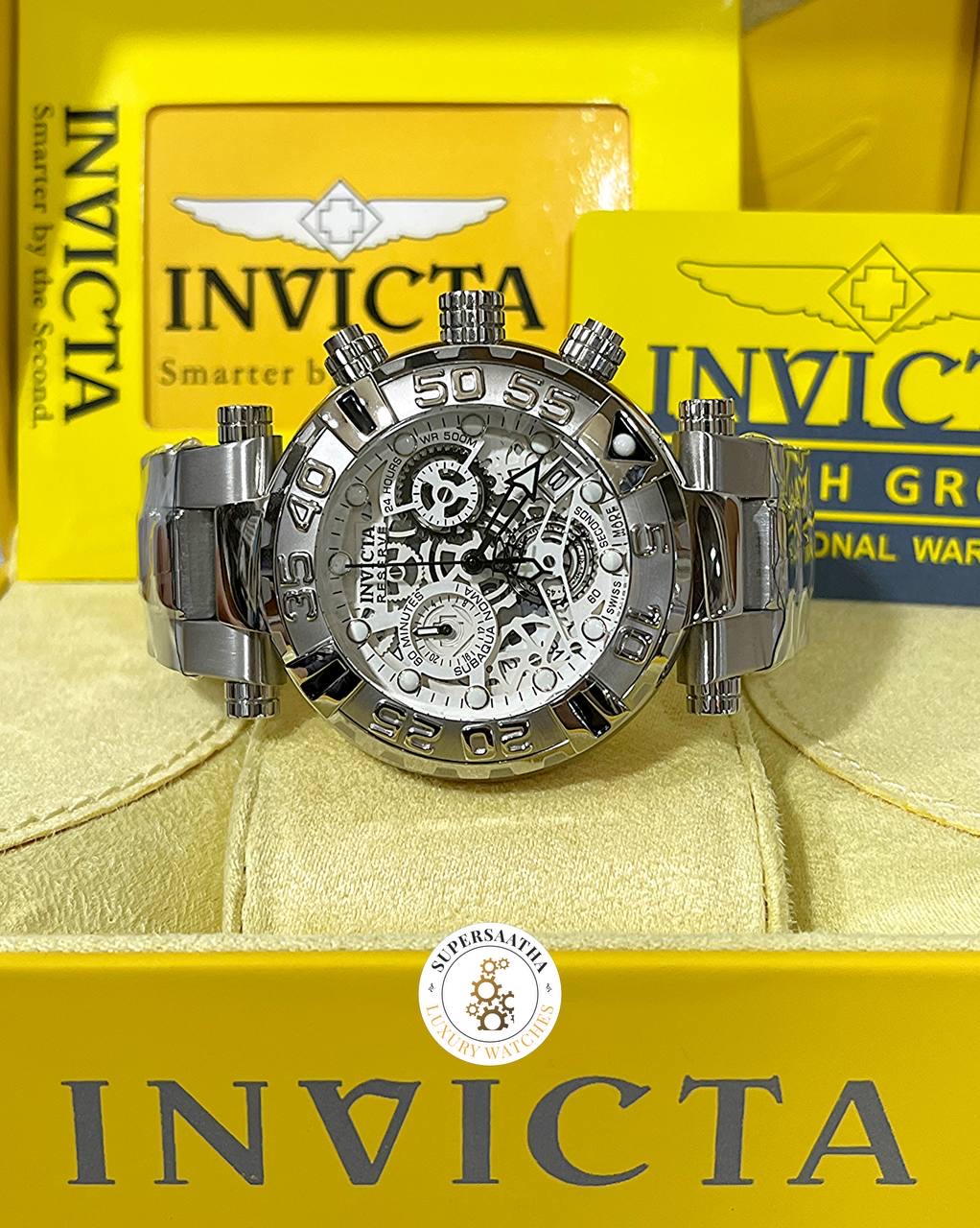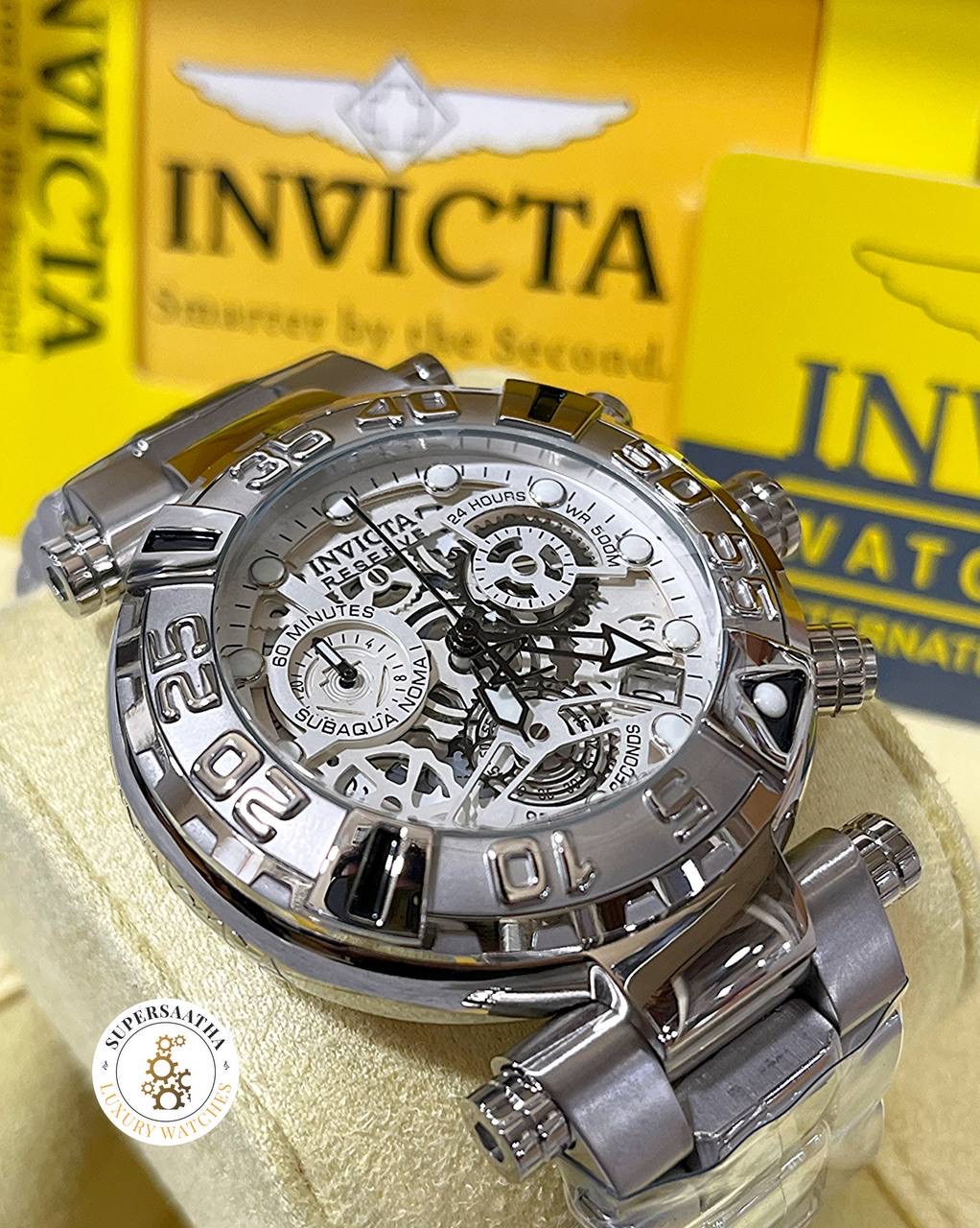 ساعت مچی اینویکتا Invicta Subaqua یک ساعت کرونوگراف با موتور کوارتز ژاپنی است که دقت و کارایی بالایی دارد. قاب ، بدنه و بند این ساعت از استیل ضد زنگ با ابکاری مقاوم است. همچنین زه چرخان این ساعت به آن ظاهر قدرتمند و حرفهای میدهد.