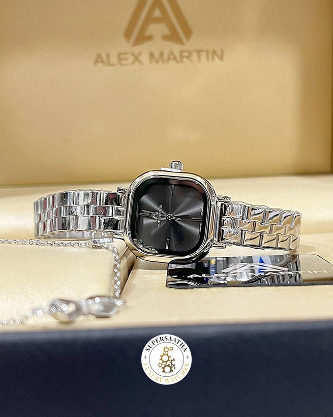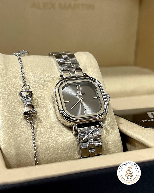 ساعت زنانه الکس مارتین نقره‌ای صفحه مربع دودی