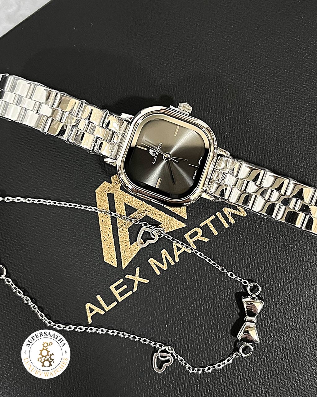 ساعت زنانه الکس مارتین نقره‌ای صفحه مربع دودی