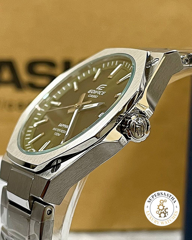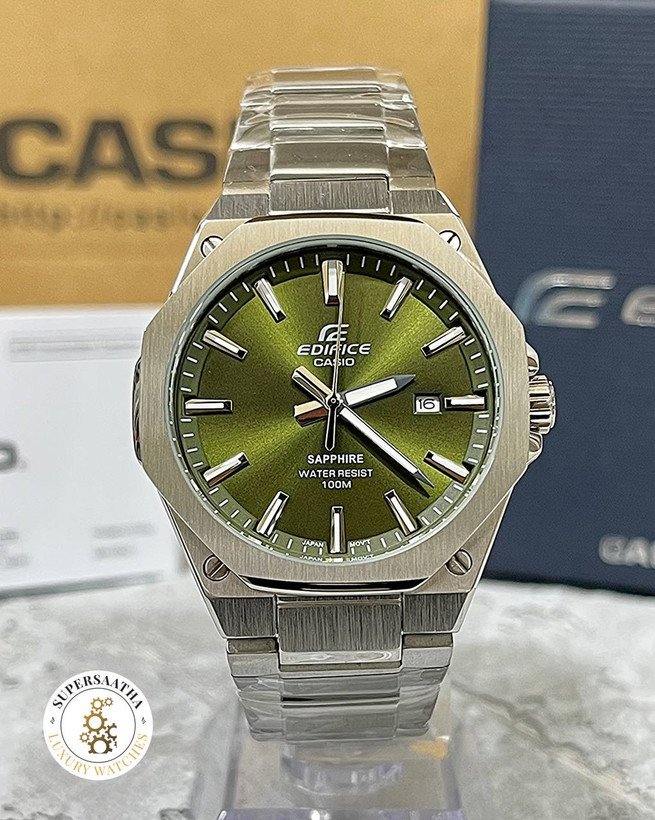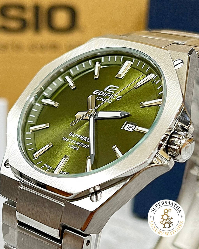 این ساعت ادیفایس های کپی با بدنه چند ضلعی و صفحه به سبز چشمنواز، ترکیبی از زیبایی و کارایی را ارائه میدهد. بند و قاب نقرهای از جنس استیل، ظاهری شیک و ماندگار به آن بخشیده است. موتور کوارتز ژاپنی، دقت خوبی در زمانسنجی دارد. شیشه معدنی مقاوم در برابر خش، از صفحه محافظت میکند و نشانگرهای نقرهای و عقربههای شبنما، خواندن زمان را در هر شرایطی آسان میکنند.