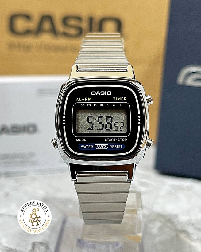 ساعت مچی کاسیو Casio LA670WA-1 یکی از مدلهای کلاسیک و خوشساخت برند محبوب ژاپنی Casio هست که با طراحی جمعوجور، وزن سبک و امکانات کاربردیاش حسابی بین خانمها و دختران جوان طرفدار داره. این ساعت با ابعاد قاب 30.3 × 24.6 میلیمتر و وزن تنها 26 گرم، بهقدری راحت و ظریفه که روی مچ دست تقریباً حس نمیشه.