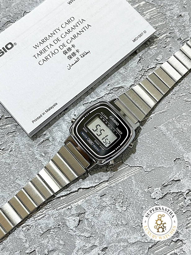 همراه این ساعت زنانه Casio، جعبه اورجینال و گارانتی ۱۲ ماهه شرکتی هم ارائه میشه تا با خیال راحت خرید کنین. اگه دنبال یه ساعت جمعوجور، شیک و بادوام از یه برند معتبر جهانی میگردی، Casio LA670WA-1 انتخابی مطمئن و دوستداشتنیه.