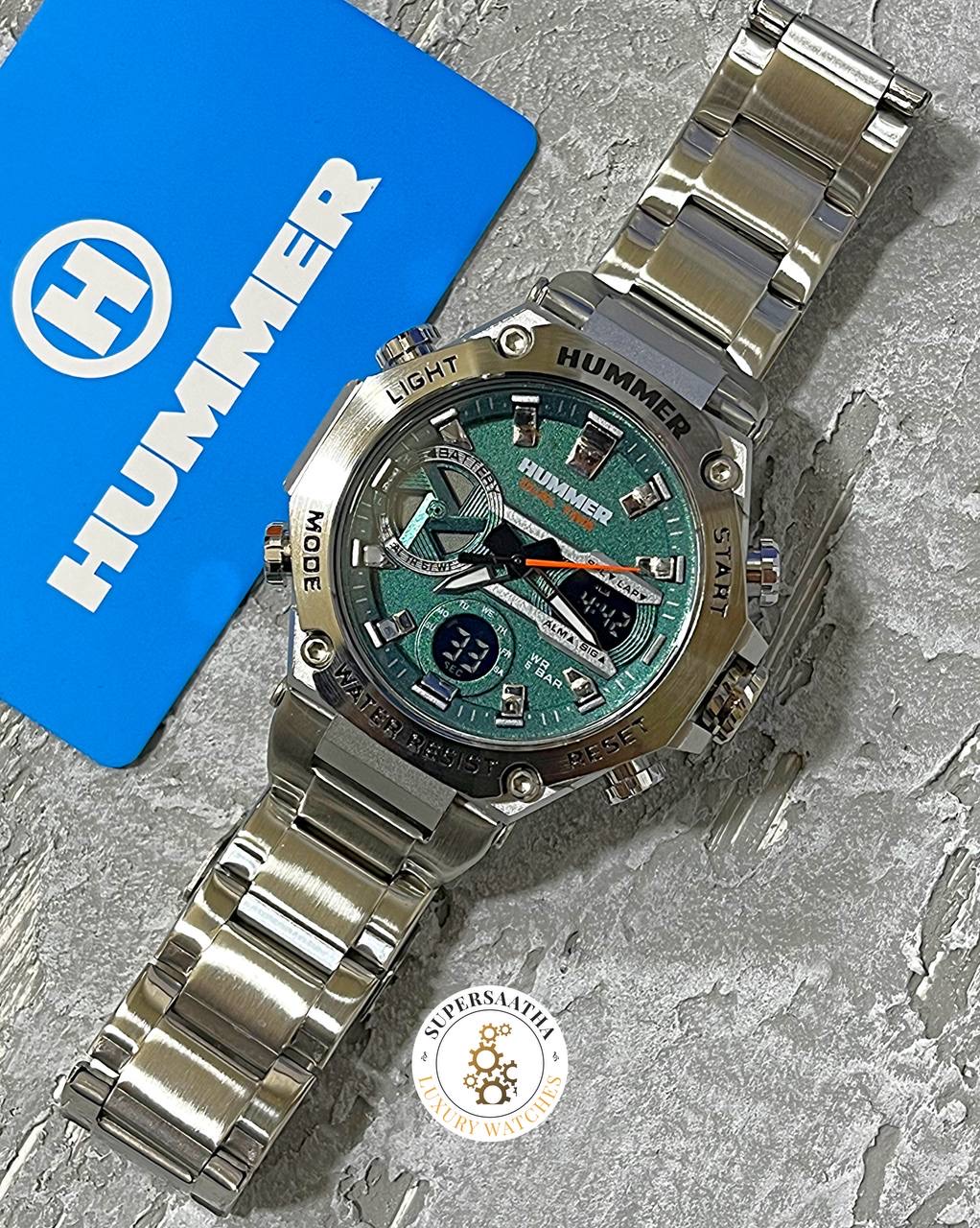 ساعت مردانه هامر 1444 دوزمانه نقره ای صفحه سبز Hummer-7536-G