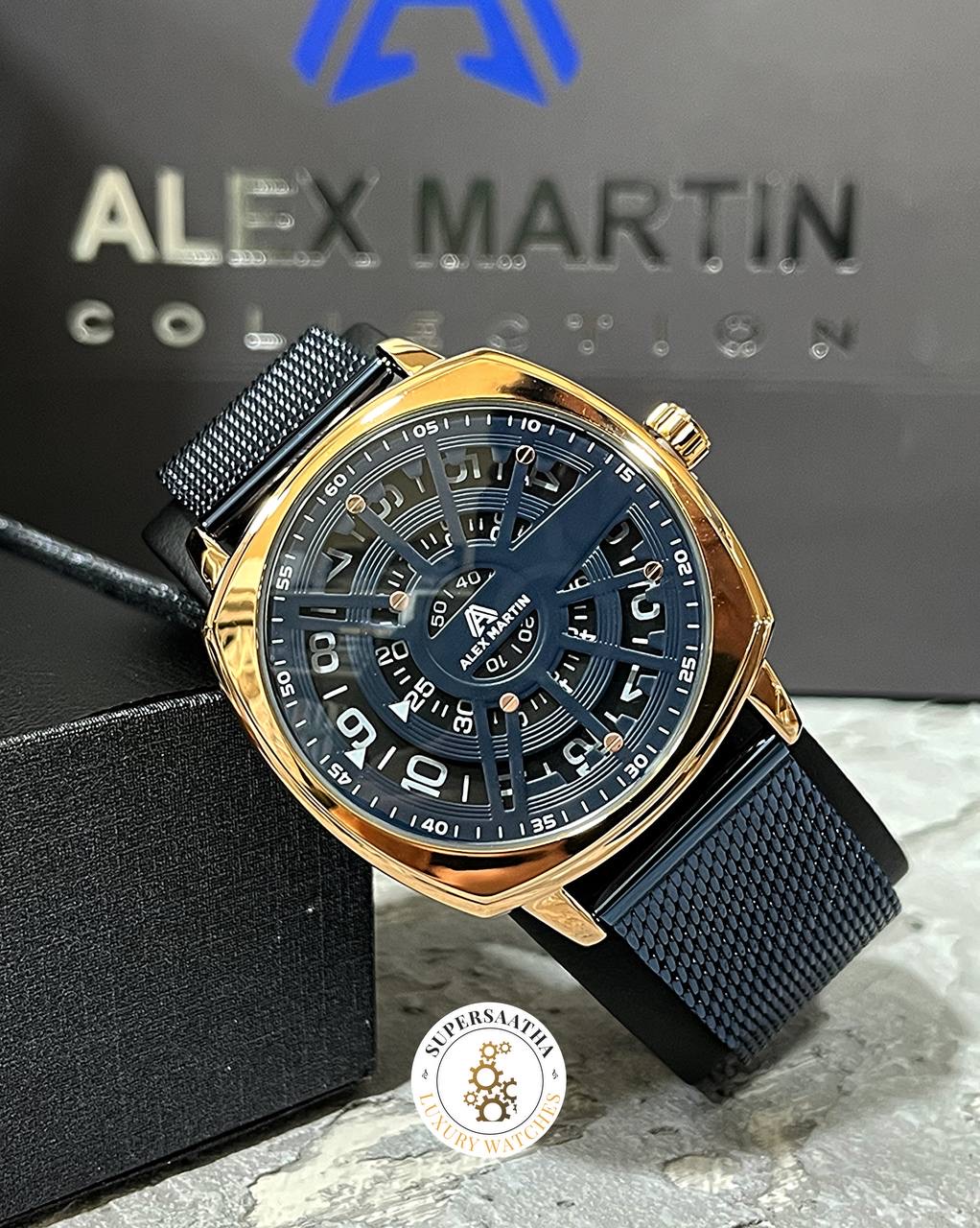 ساعت مردانه الکس مارتین رزگلد و سورمه ای 8019