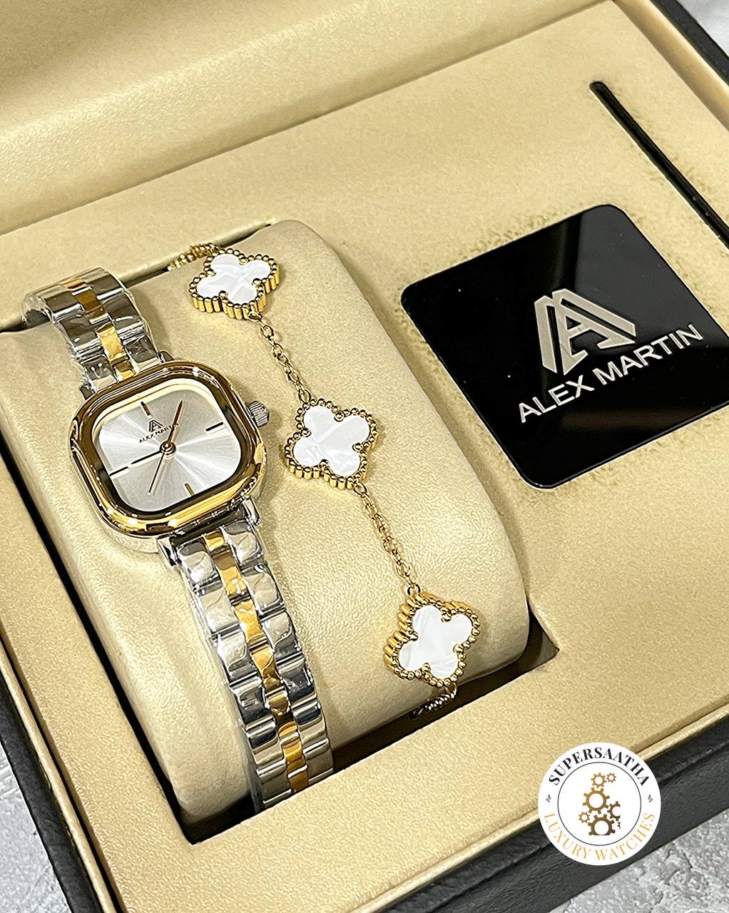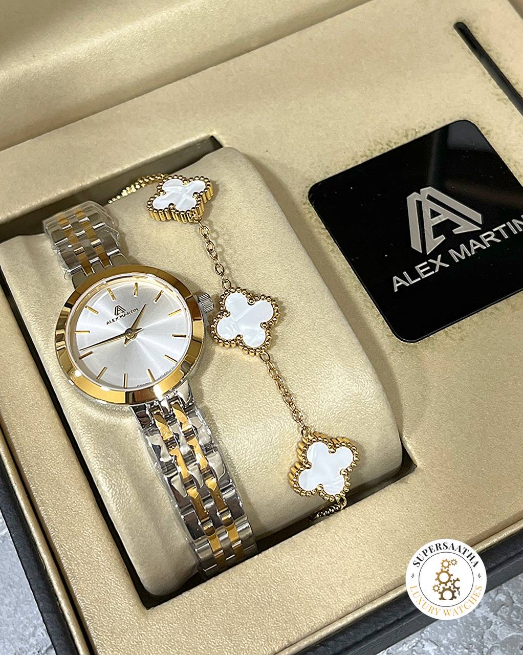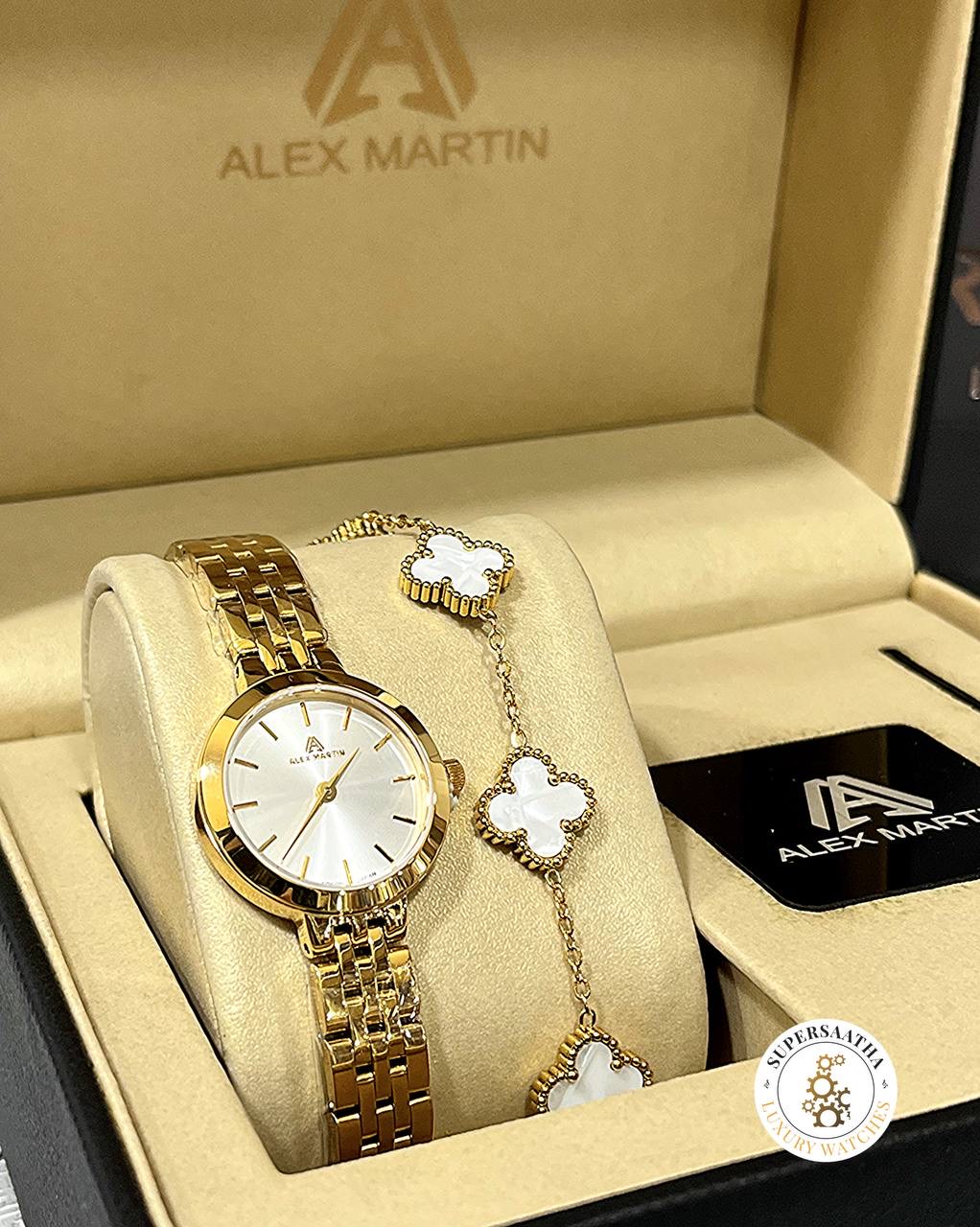 ساعت زنانه الکس مارتین طلایی و نقرهای 6005L