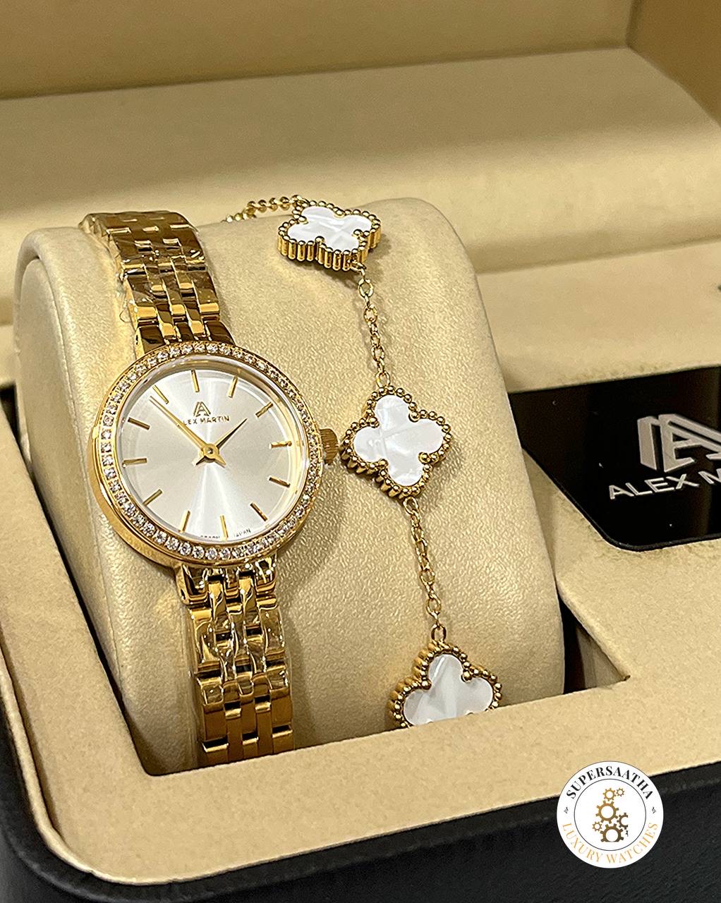 ساعت زنانه الکس مارتین طلایی نگین دار
